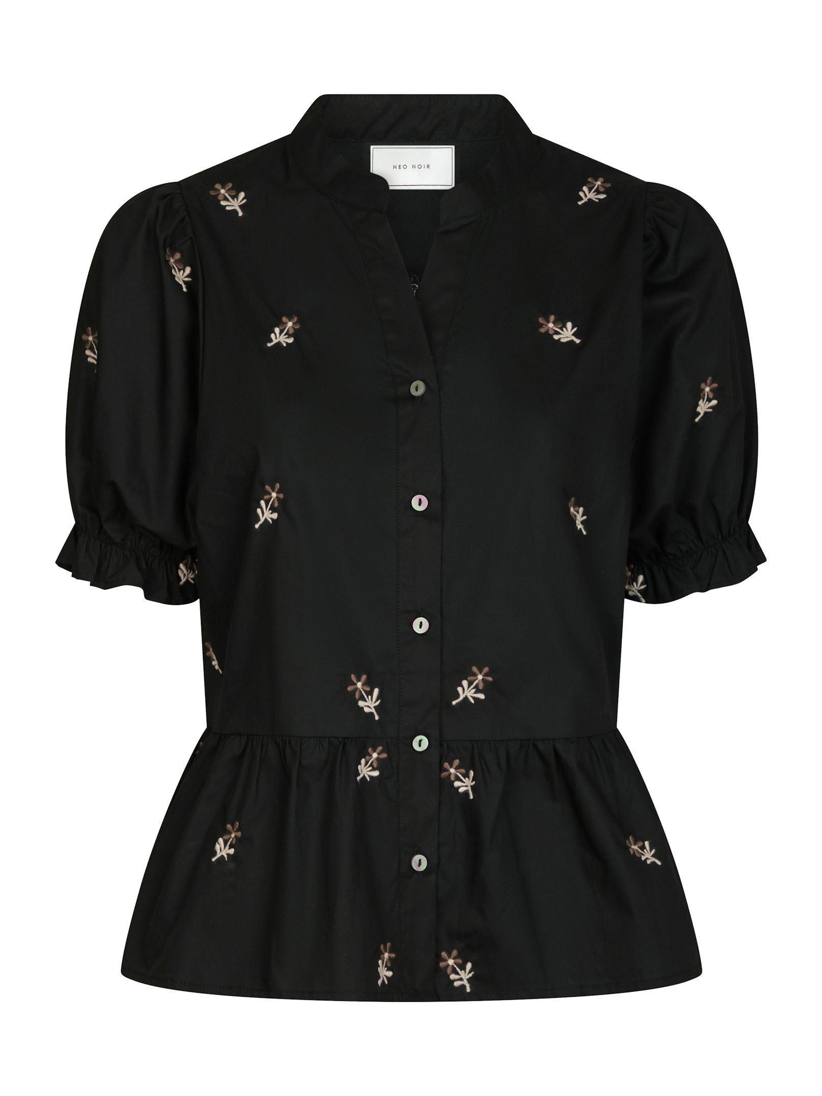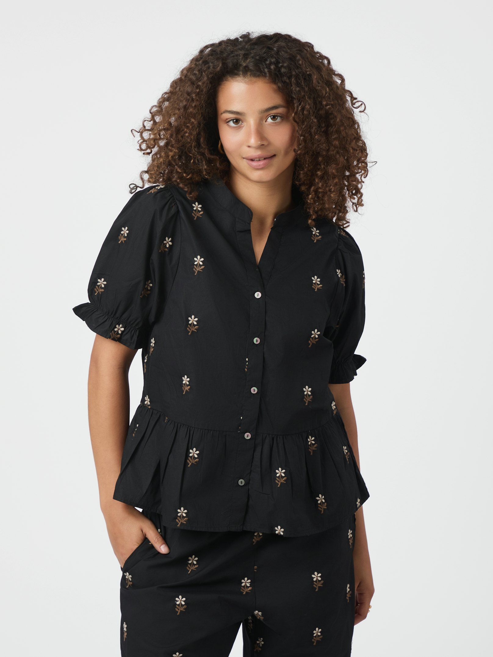 Neo Noir Top med blomster broderi og korte pufærmer.